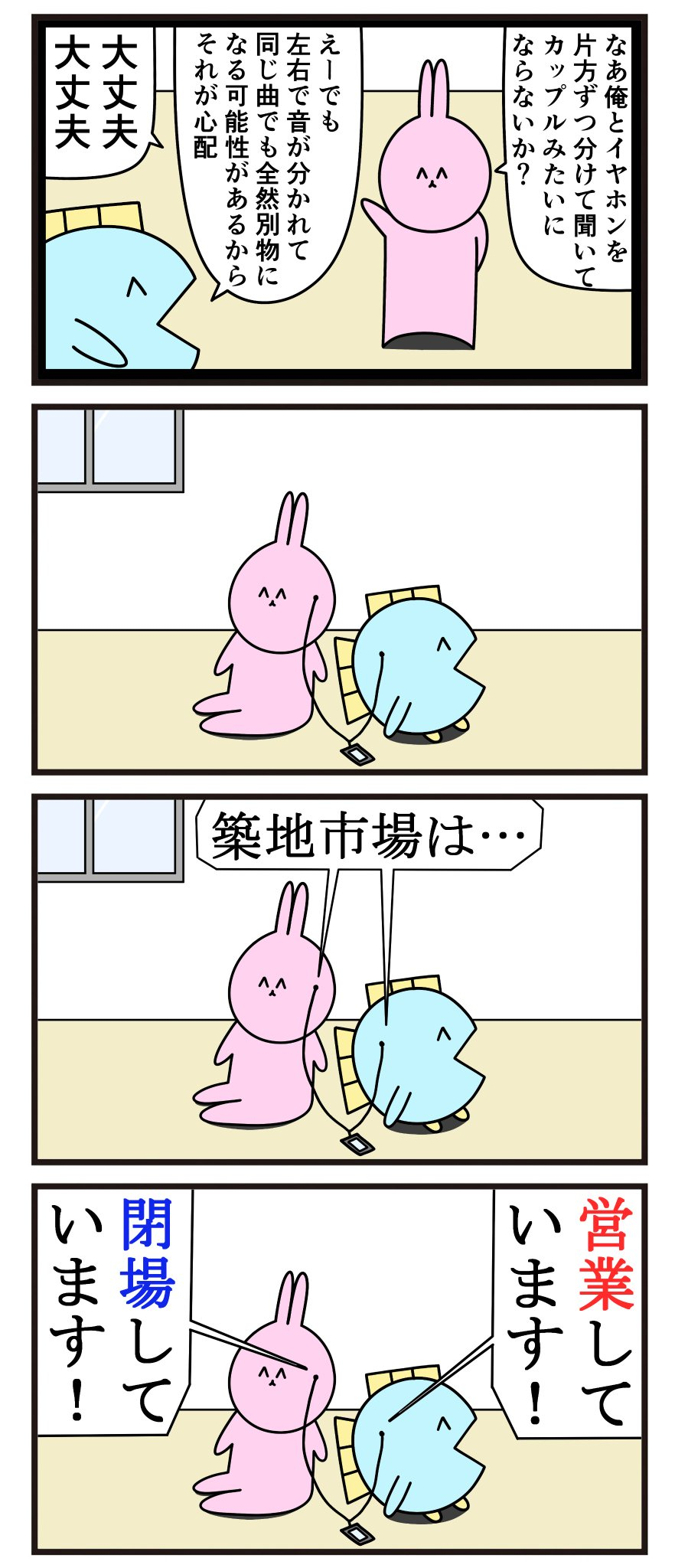 魚の4コマ「カップルイヤホン」