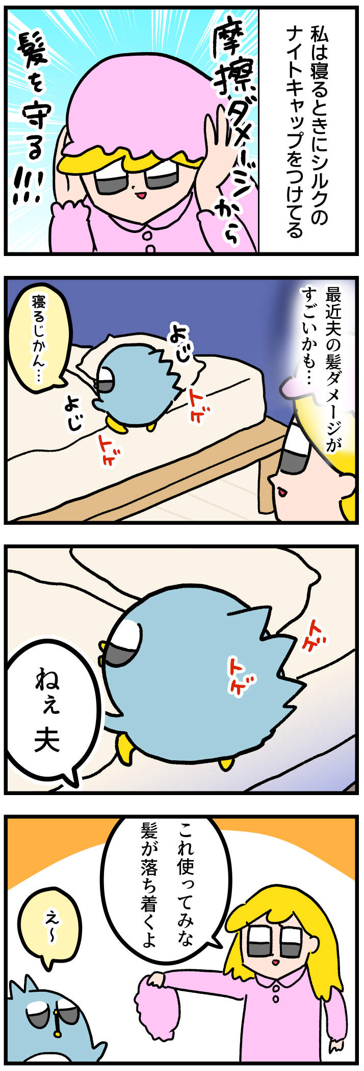 夫の髪でもナイトキャップの効果でる?