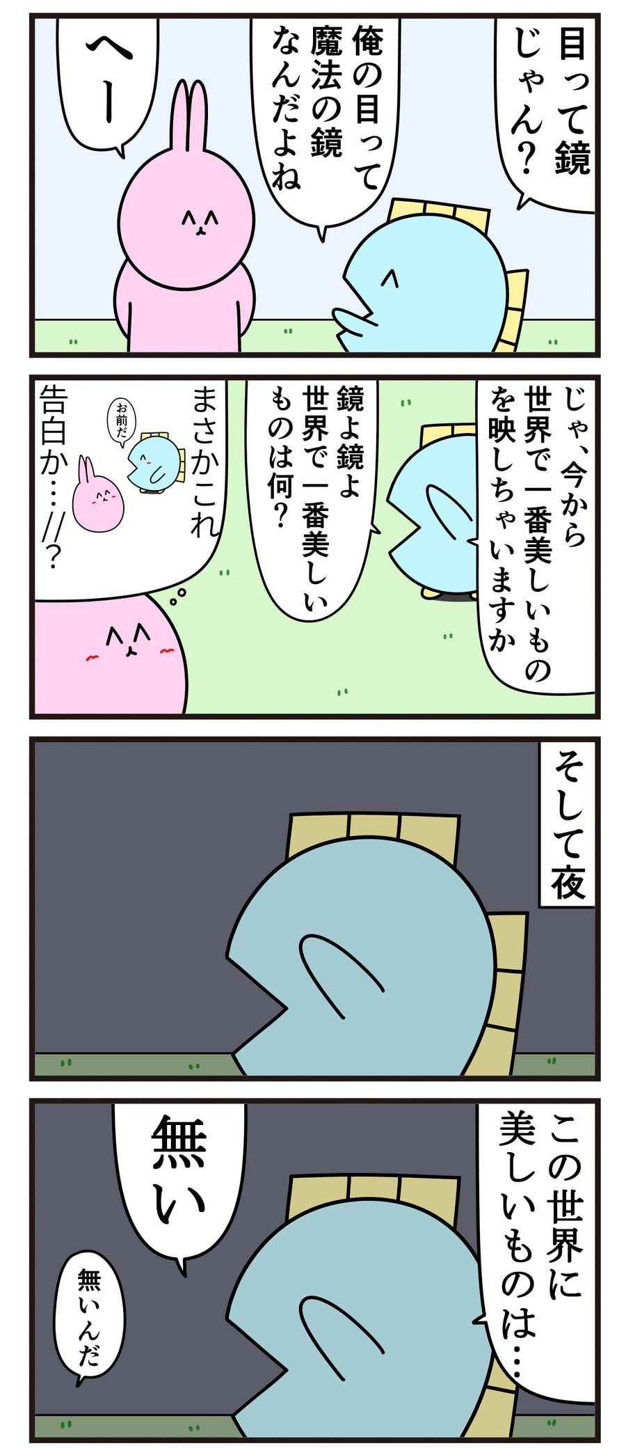 魚の4コマ「目が魔法の鏡の人」