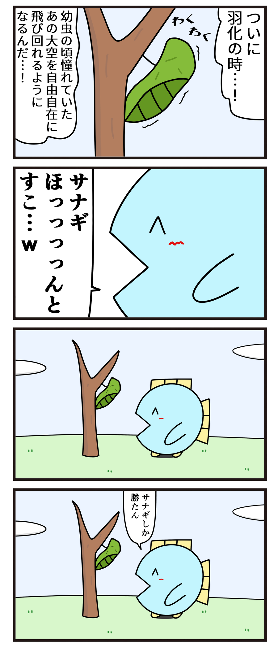 魚の4コマ「変なオタクがいるせいで羽化できない」