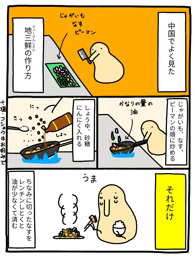 中国でよく見た三種の野菜炒め(地三鲜)の作り方