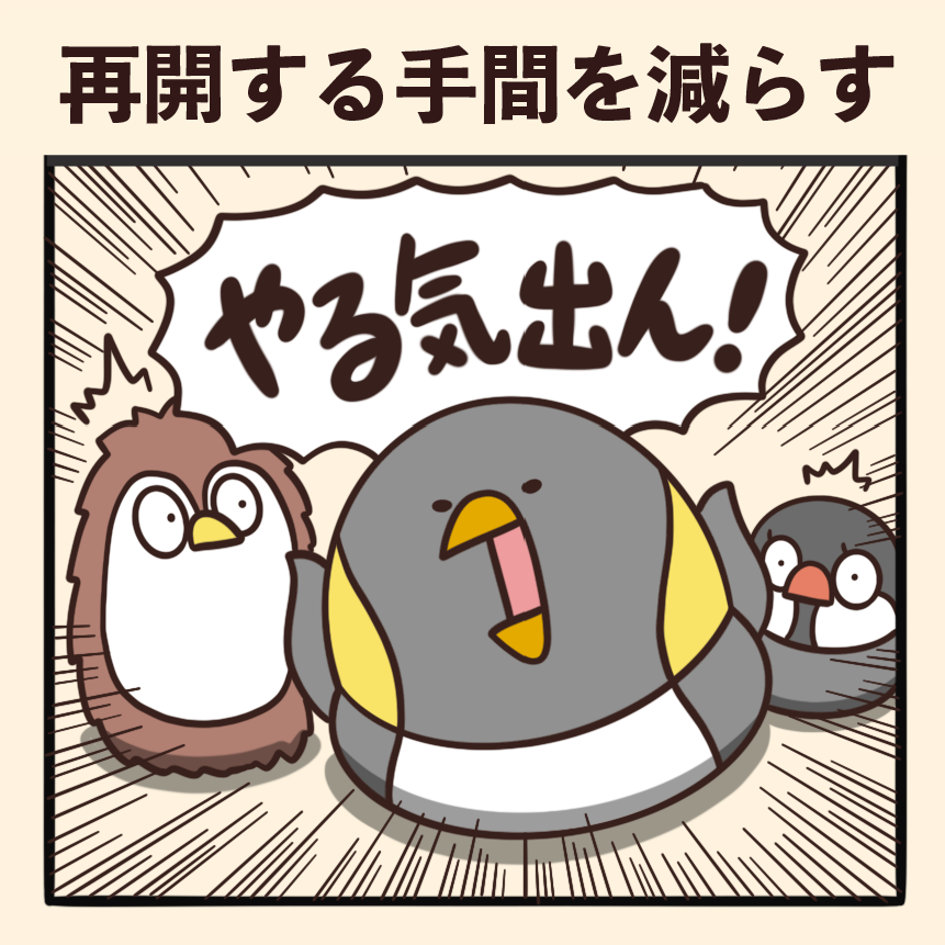 やる気を出すには再開する手間を減らす