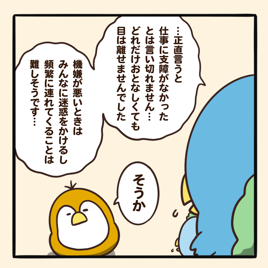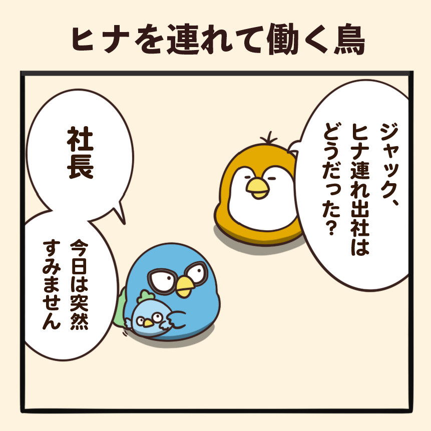 ヒナを連れて働く鳥